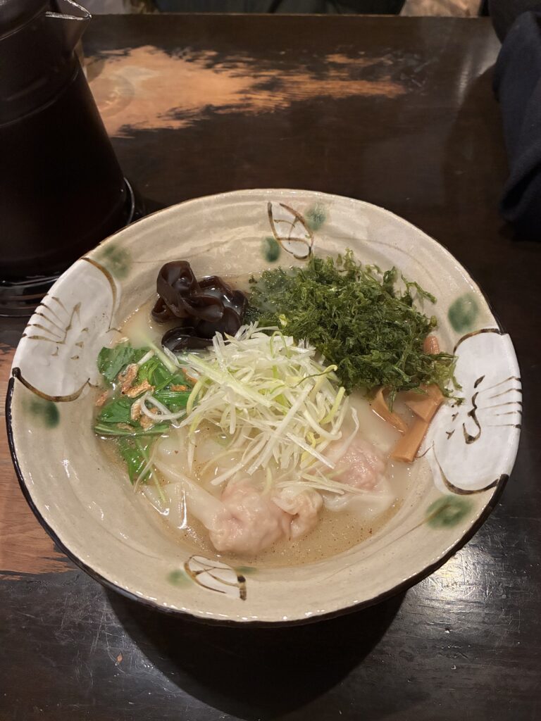 私は塩ラーメンに海老雲吞と岩海苔をトッピング。